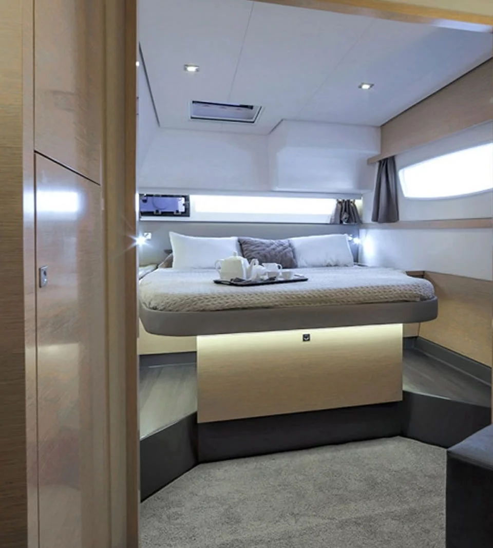 La circulation à l’intérieur du bateau permet une communication directe entre le cockpit, le poste de pilotage et le lounge deck.