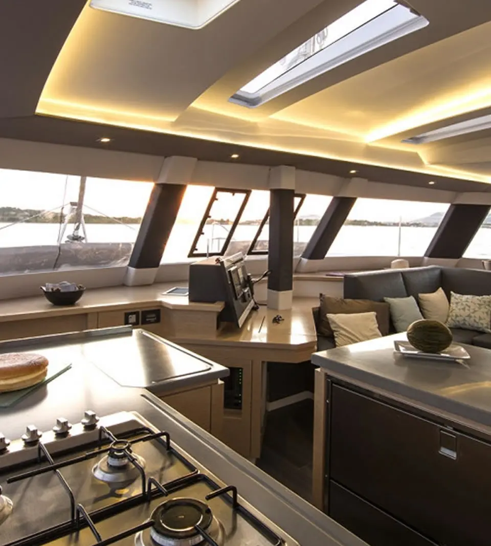 Venez nombreux à bord de ce multicoque de croisière, qui séduit par ses multiples atouts : des espaces de détente exceptionnels, des qualités marines confirmées et une grande maniabilité.
