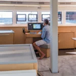 Il est responsable pour la navigation et s’occupe des démarches auprès des douanes.